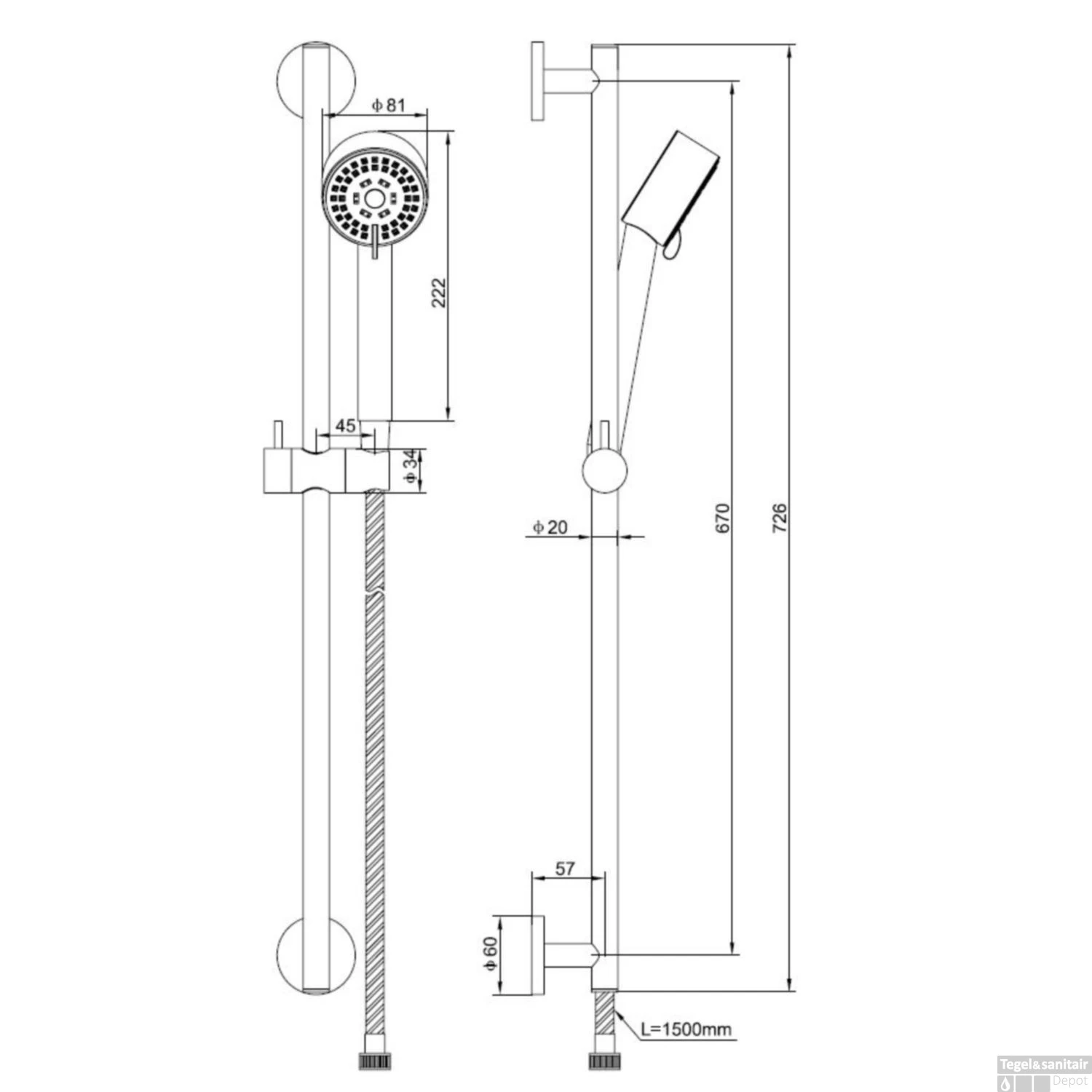 - – Inclusief Chepri verstelbare handdouche (3 standen)