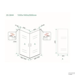 Specificaties BWS Douchecabine Dubbele Swingdeur 100x100cm 8mm NANO Coating: