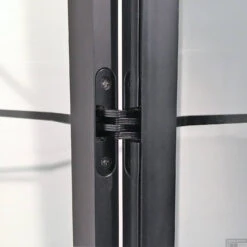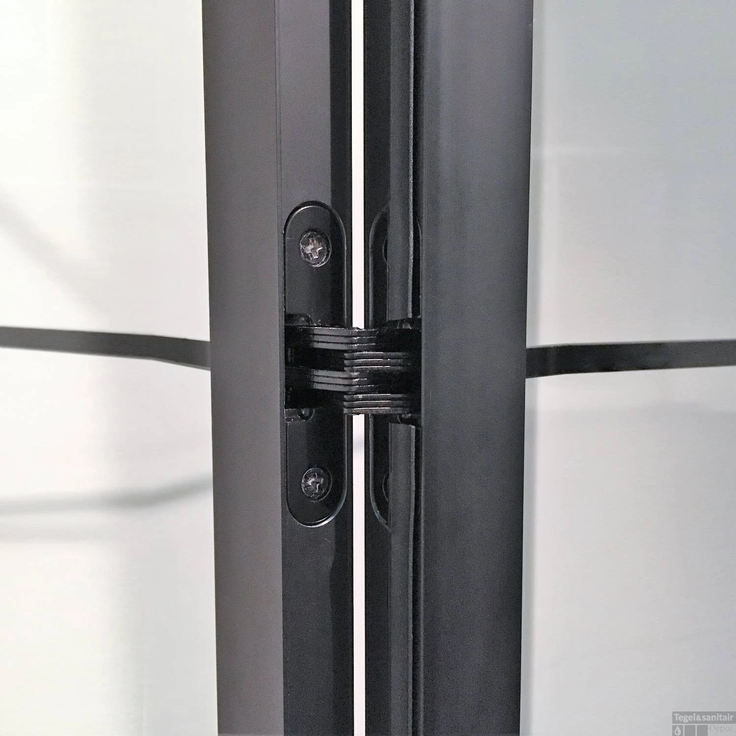 Let op! Bij het schoonmaken van het glas mogen er geen bijtende schoonmaakmiddelen gebruikt worden. Het mat zwarte raster zit aan de buitenkant van de douchecabine, deze is ongeveer 0,5cm dik en is dus aan de binnenkant van de douchecabine niet te voelen.