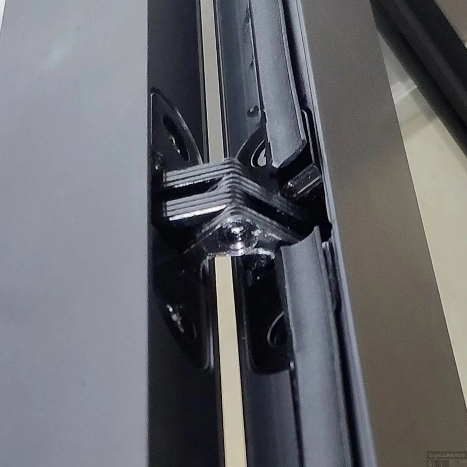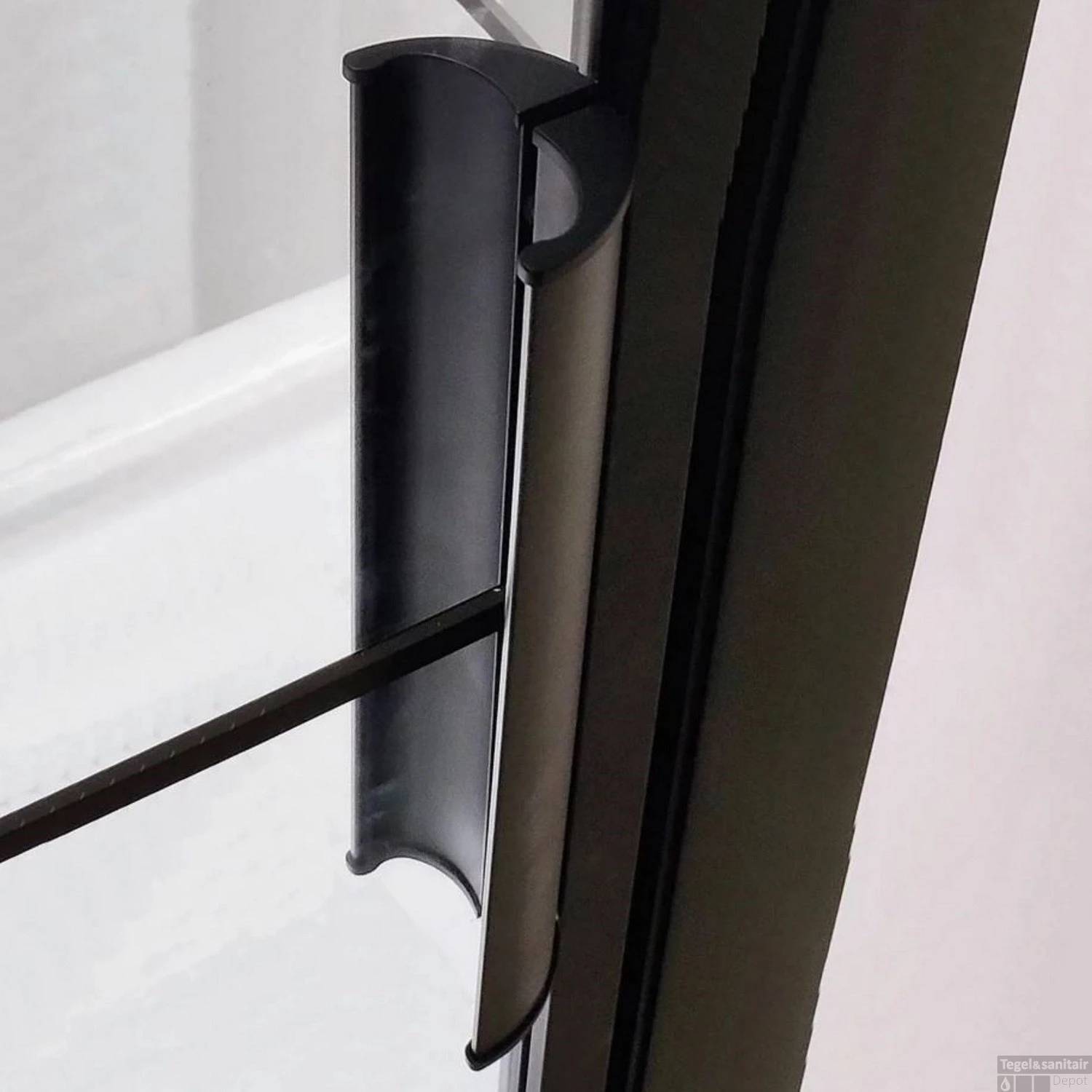 Let op! Bij het schoonmaken van het glas mogen er geen bijtende schoonmaakmiddelen gebruikt worden. Het mat zwarte raster zit aan de buitenkant van de douchecabine, deze is ongeveer 0,5cm dik en is dus aan de binnenkant van de douchecabine niet te voelen.