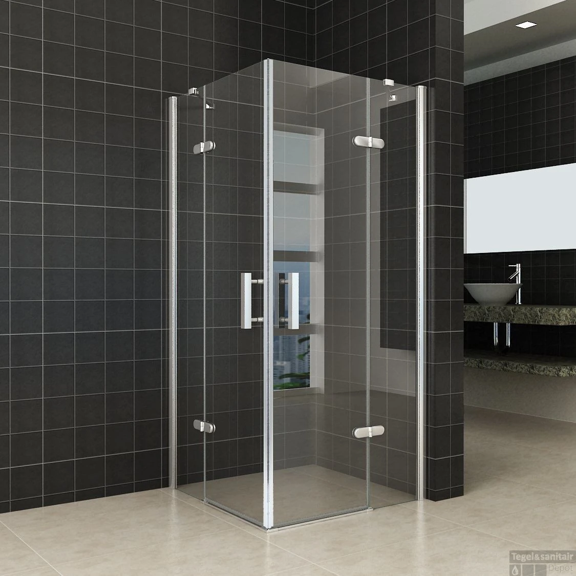 Douchecabine Wiesbaden hoek instap 2 deuren 90x90cm 8mm NANO coating