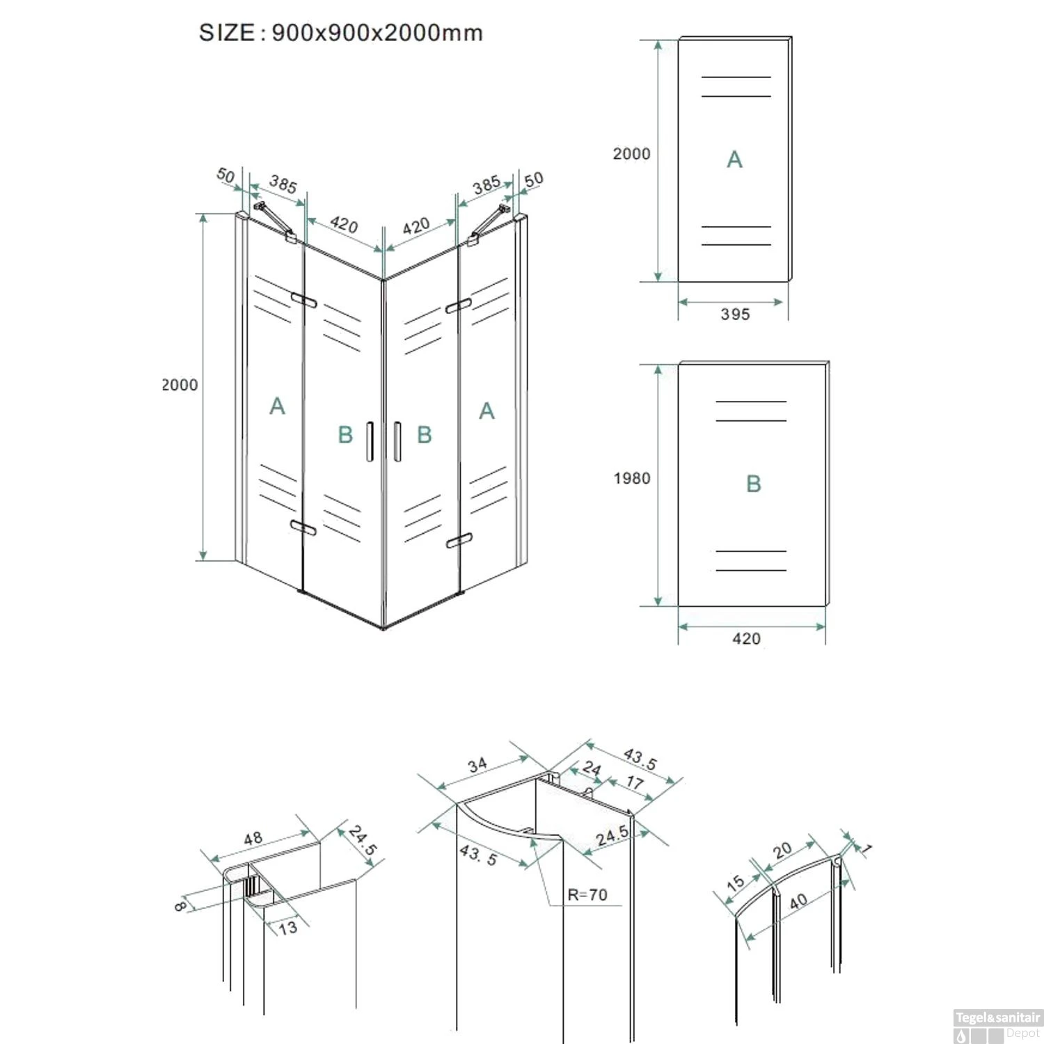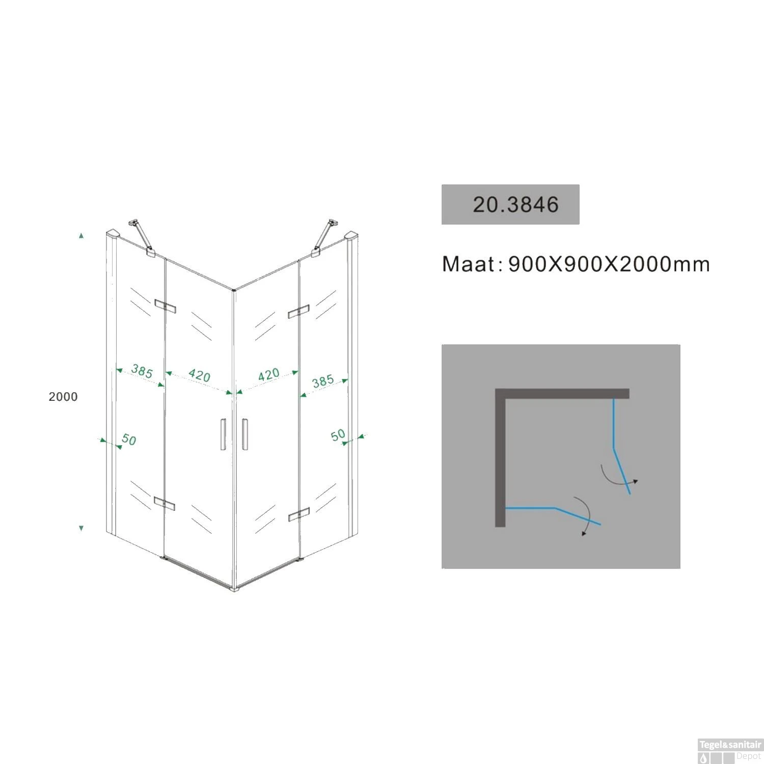 LET OP: Omdat de cabine ook op een douchebak te plaatsen is zijn de afmetingen 2 á 3 cm kleiner als aangegeven op specificaties
