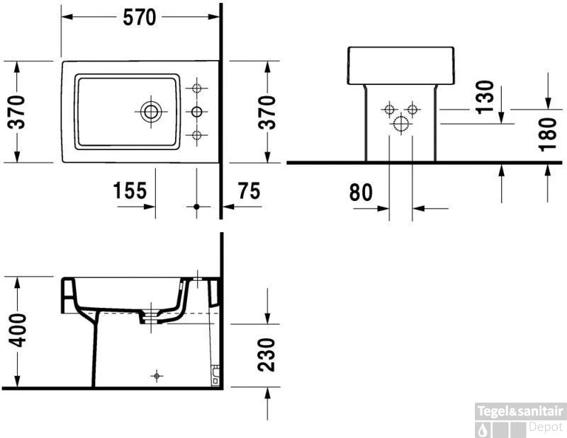 | Diepte (voorsprong) | 57 cm |