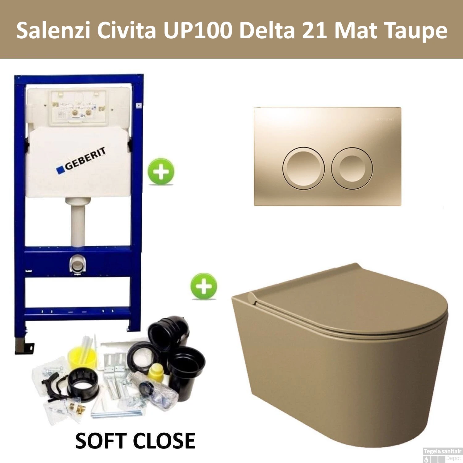 Geberit UP100 Toiletset Compleet | Inbouwreservoir | Salenzi Civita Mat Taupe Met Drukplaat