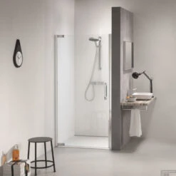 De Nisdeur by Sealskin Impact 100×195 cm Swingdeur Chroom/zilver Helder Glas oogt transparant en ruimtelijk en is stijlvol tot in het kleinste detail. De draaideur voor plaatsing in een nis is een fraaie aanvulling in iedere badkamer.