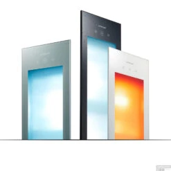 Design: De Sunshower Deluxe Black is een full body inbouwapparaat met zowel een UV- als infraroodfunctie. De Sunshower Deluxe heeft vijf korte golf infraroodlampen van elk 500W en vier UV-lampen. Het apparaat is afgewerkt met een gezandstraalde glasplaat met een wit kader en heeft een smalle opstaande aluminium rand.