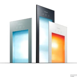 De Sunshower Pure is een half body apparaat met een korte golf infrarood lamp van 1250W. Het apparaat wordt volledig weggewerkt in de wand. De Sunshower Pure Zwart is afgewerkt met een gezandstraald glasplaat en heeft een smalle, opstaande aluminium rand.