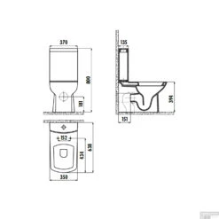 Het toilet is 39.4 cm hoog, 63.8 cm diep en 35 cm breed. Dit toilet kan zowel worden aangesloten op de vloer als op de muur.
