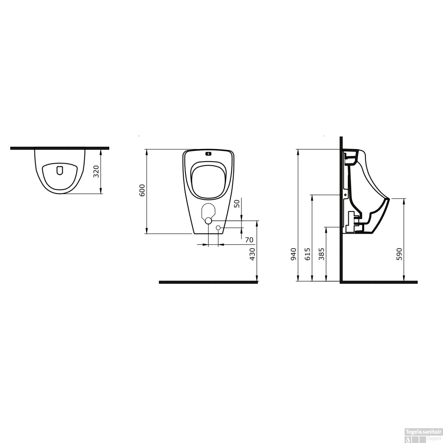 Specificaties Urinoir Boss & Wessing Bocchi Met Bovenaansluiting Mat Zwart