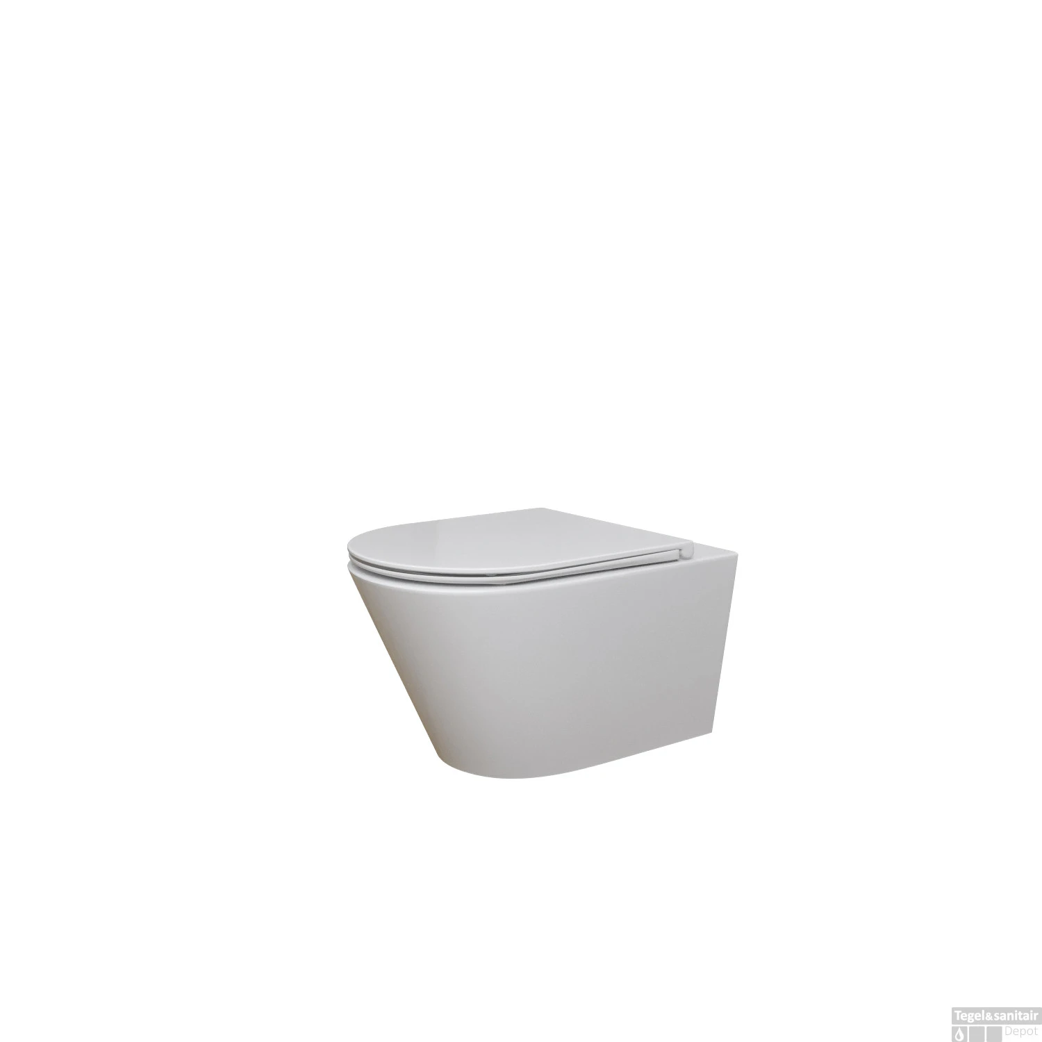 Wandcloset Wiesbaden Stereo Rimless Met Flatline Toiletzitting Glans Wit